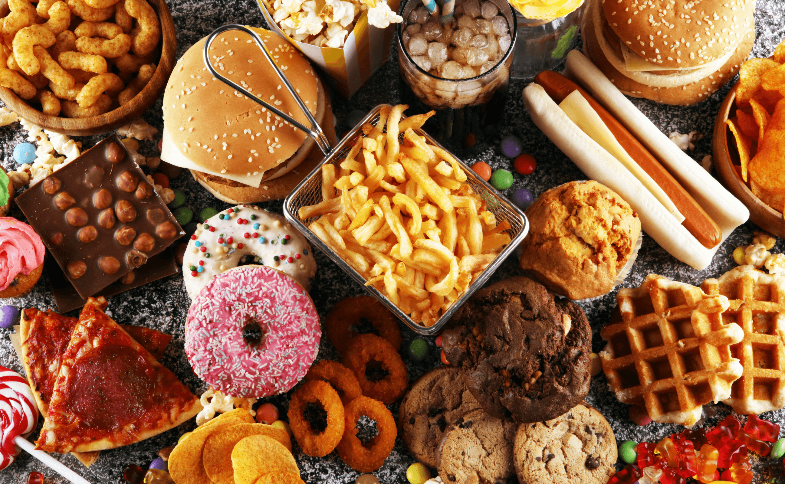 2. Fizzy drinks and energy drinks are sugar-packed beverages and often our go-to when thirsty, replacing water. Headaches are one of the first signs of dehydration. Studies have shown that dehydration of as little as 2% (the same as a 1.6L water loss for a 80 kg person) can affect functions of the brain, gut, kidneys and heart (related to blood volume).